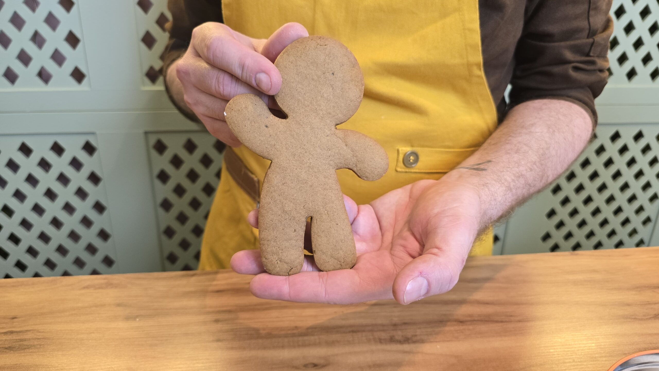 Biscoitos de gingerbread, com aquele clássico sabor de fim de ano, combinando gengibre, canela e especiarias em uma massa levemente escura e aromática. Ideais para cortar em formatos divertidos e decorar, são perfeitos para datas sazonais e kits temáticos.