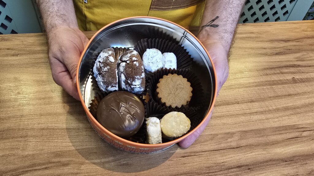 Mini biscoitos delicados com massa macia e amanteigada, recheados ou finalizados com tiras de goiabada. Têm aquele sabor afetivo de confeitaria tradicional e funcionam muito bem em bandejas, kits e caixas mistas.